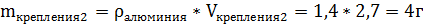 Масса элементов укупорочного средства, исходя из того, что ρалюминия=2,7г/см3,