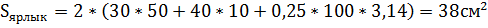 Площадь одного ярлыка составляет:
