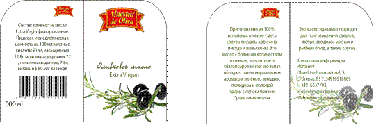 · Упаковываемый продукт- оливковое масло «Maestro de Oliva».