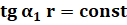 по закону гиперболического возрастания к корню тангенса угла потока в осевом