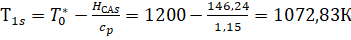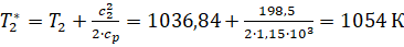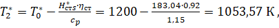 температура газа на входе в ступень турбины;