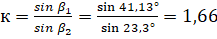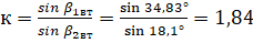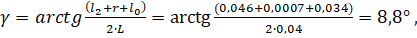 Угол заострения на входе вычисляем по формуле: