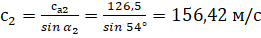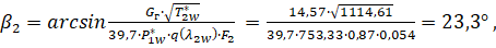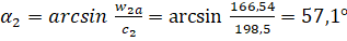 Угол выхода потока из рабочего колеса вычисляем