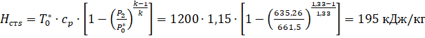 теплоперепад ступени турбины;