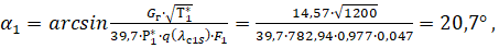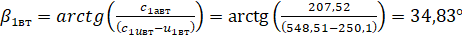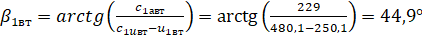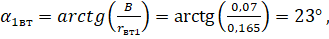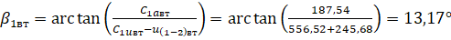 Угол входа потока в рабочее колесо вычисляем по