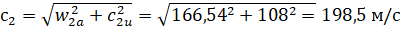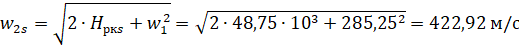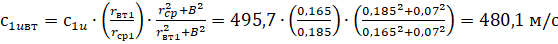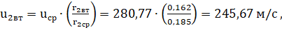 выходе из рабочего колеса вычисляем по формуле: