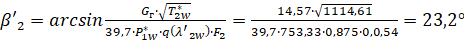 эффективный угол выхода из решетки вычисляем по