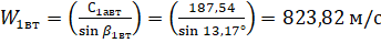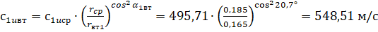 по закону постоянства угла абсолютной скорости α1=const для