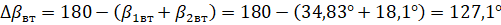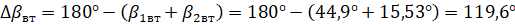 Угол поворота потока вычисляем по формуле: