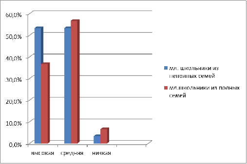 неполных семей имеют отличия от аналогичного поведения у школьников из полных