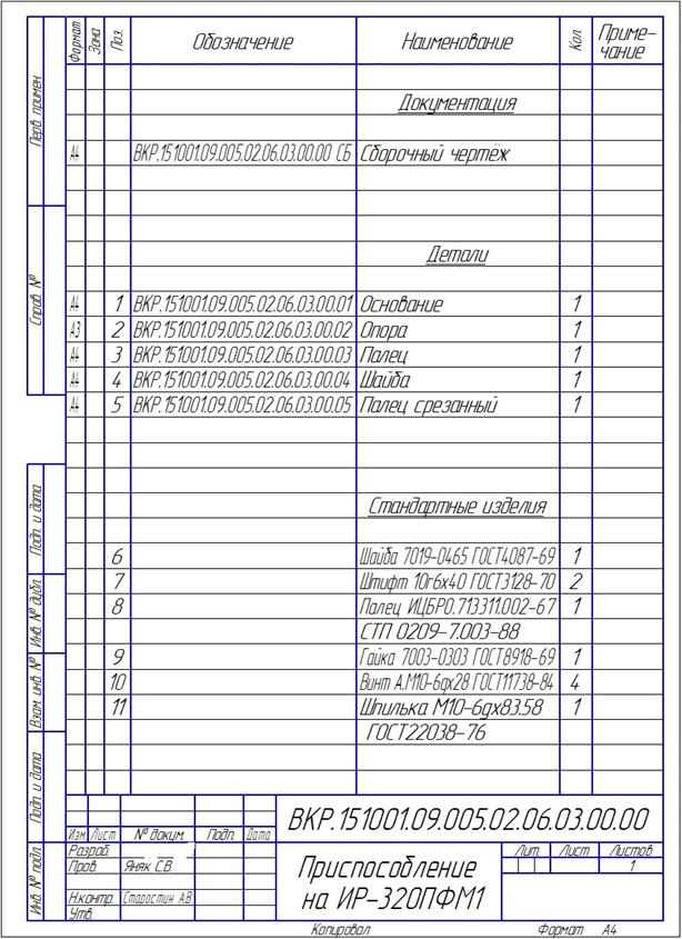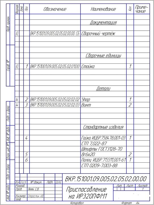 возможностям ОАО «ВОМЗ». Написан комплект конструкторской документации, который