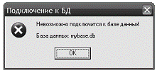 Рисунок 28 - Ошибка при подключении базы данных