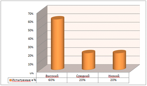 Распределение испытуемых в зависимости от уровня для самооценочного вида