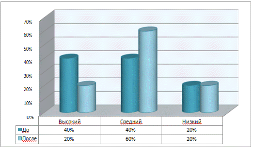 школьников с низким уровнем тревожности (40%). Это может предполагать
