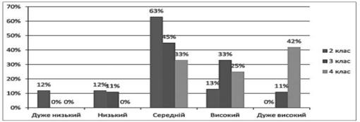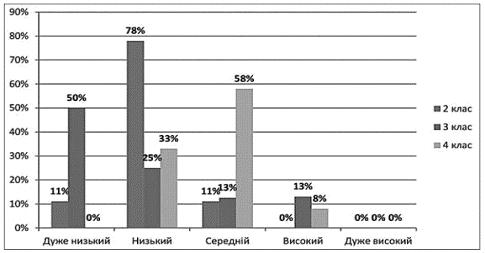 рівень виявлено у більшої частини опитаних дітей. Таким чином, серед опитаних