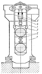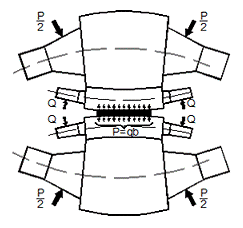 восьмью гидроцилиндрами - по четыре на каждый рабочий валок. Для измерения