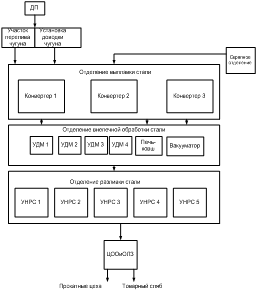 Цех внепечной обработки конвертерной стали (ЦВОКС) входит в состав
