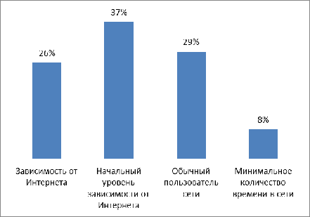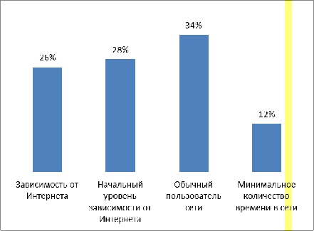 сопоставили интернет-зависимость с длительностью применения Интернета и с психологическими