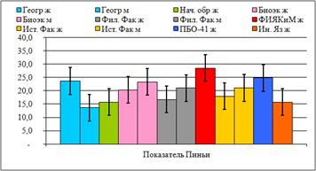 адаптации студентов различных факультетов педагогического института