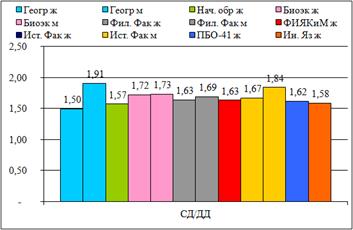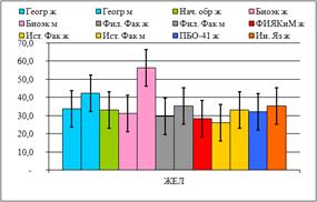 существенные различия студентов по специальностям: самые высокие показатели у