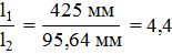 Из рисунка 4.2 можем определить длины первого и второго плеча,