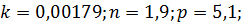 знаменателе - расчетный внутренний диаметр dp, мм.