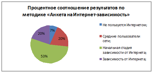 начальная стадия зависимости и 27% - зависимость от интернета. При этом