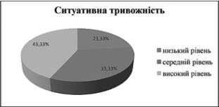 частку займають також досліджувані з середнім рівнем ситуативної тривожності
