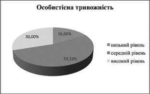 частку складають також досліджувані з високим рівнем особистісної тривожності