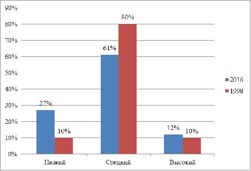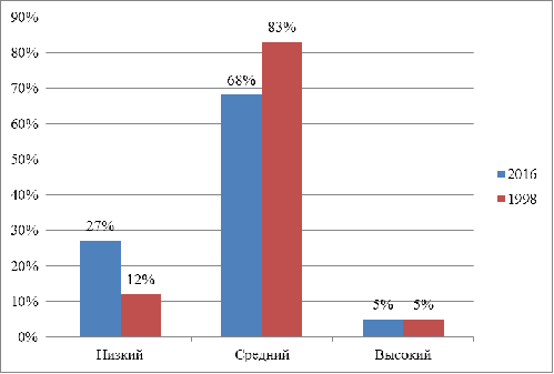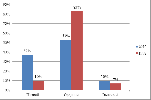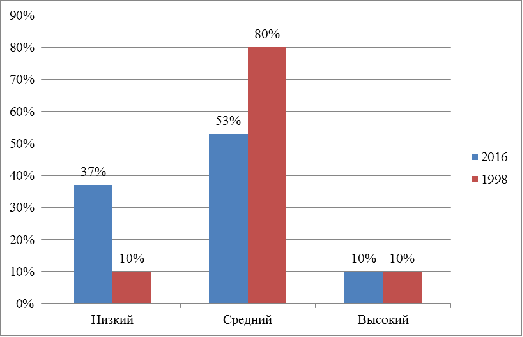 самосознания дошкольников 2016 и 1998 годов.