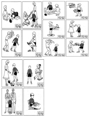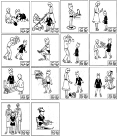 передать при помощи жестов и мимики. Например, «Мама Кати пьет кофе. Мама