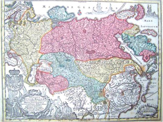 на півдні - частиною Азії (Бухарський емірат, Монголія, Калмицьке ханство), на