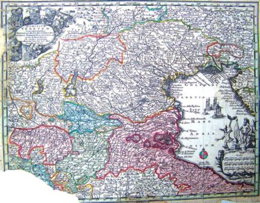 входять міста Венеція, Тревізо, Верона, Падуя та ін. На мапі зображено також