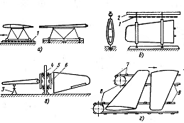 Конструкція лонжеронів балочного і ферменного типів: а, б - балочні: 1 -