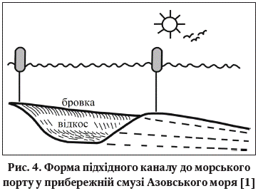 (ближче до берега), де висота відкосів значна, а потік наносів - більш