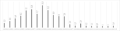 Теперь, чтобы получить значения для 2015, 2016 и 2017 годов