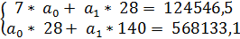 : ŷ = 7799,91 + 2498,11 * 8 = 27784,79;