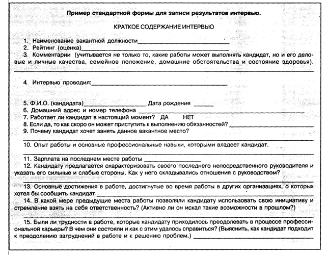 процесса найма, отбора персонала[1].
