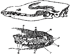 кости и верхняя челюсть, 4 - нижняя челюсть, 5 - лопатка, 6 - плечевой сустав,