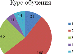 59% опрошенных, а 54% респондентов учатся на 2 курсе.