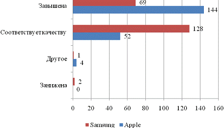соответствующей качеству. Интересное наблюдение: 0% указали, что товары Apple имеют