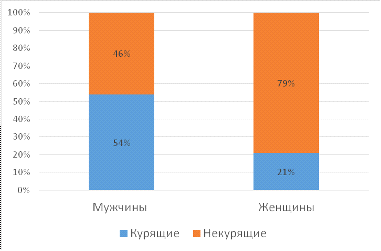 курения для мужчин выше, чем для женщин. Кроме того, было обнаружено негативное