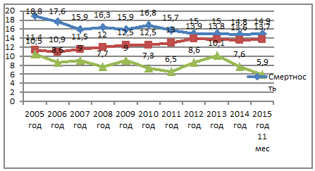 смертности детей до года. Так в период с 2013 по 2015 год умерло 232 ребенка.