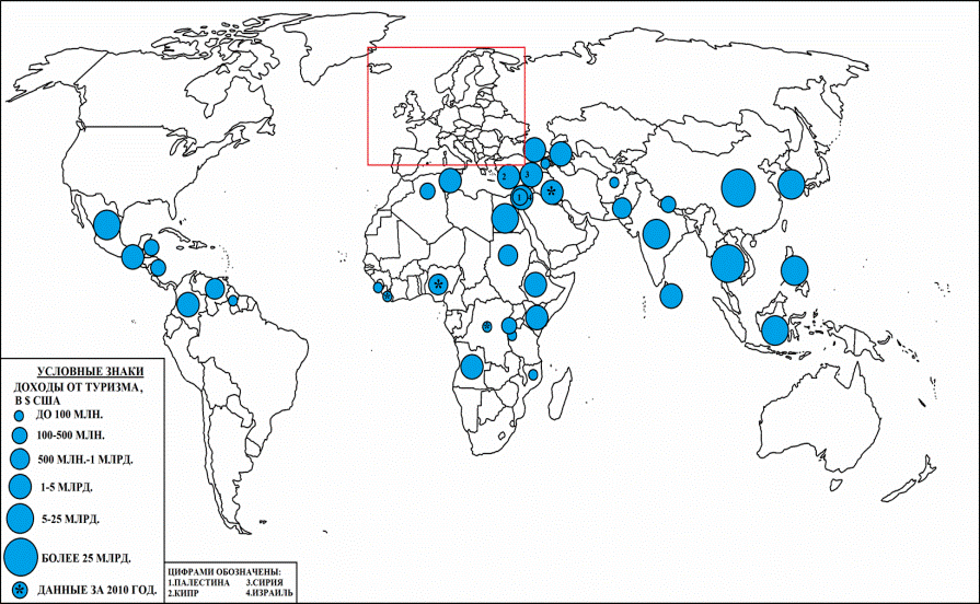странами от туризма и их динамики);