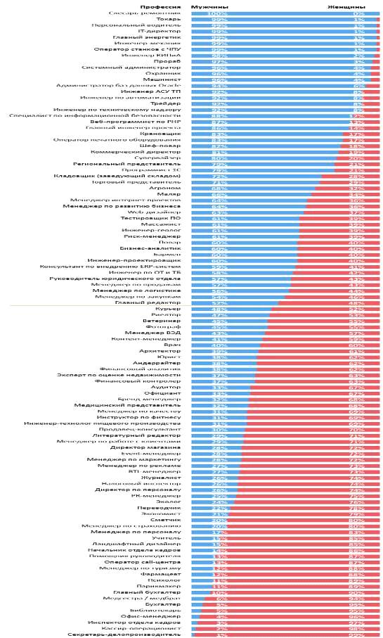 профессиональной должности, но на деле мы имеем такое явление, как гендерная