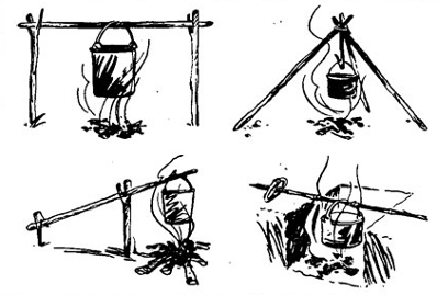 разжечь костер и в котелке вскипятить воду. Та команда, у которой быстрее