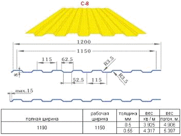 Снеговая нагрузка 240 кг/кв.(IV район).