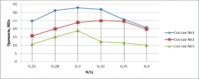 3.2 Влияние В/Ц соотношения мелкозернистой бетонной смеси на