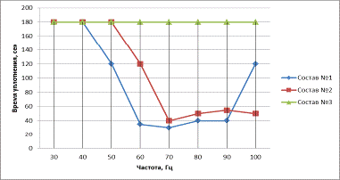 3.3.1 Исследование зависимости времени уплотнения от частоты