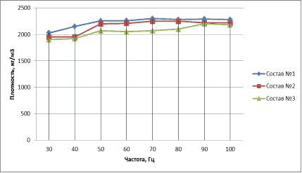 3.3 Влияние частоты колебания вибростола на физико-механические